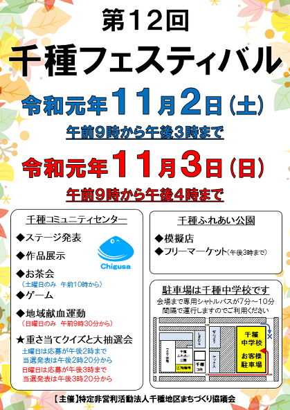 日時:令和元年11月2日(土曜日)11月3日(日曜日)