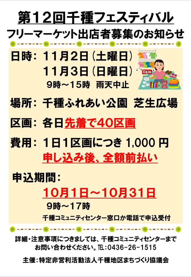 第12回千種フェスティバルのフリーマーケット出店者を募集します